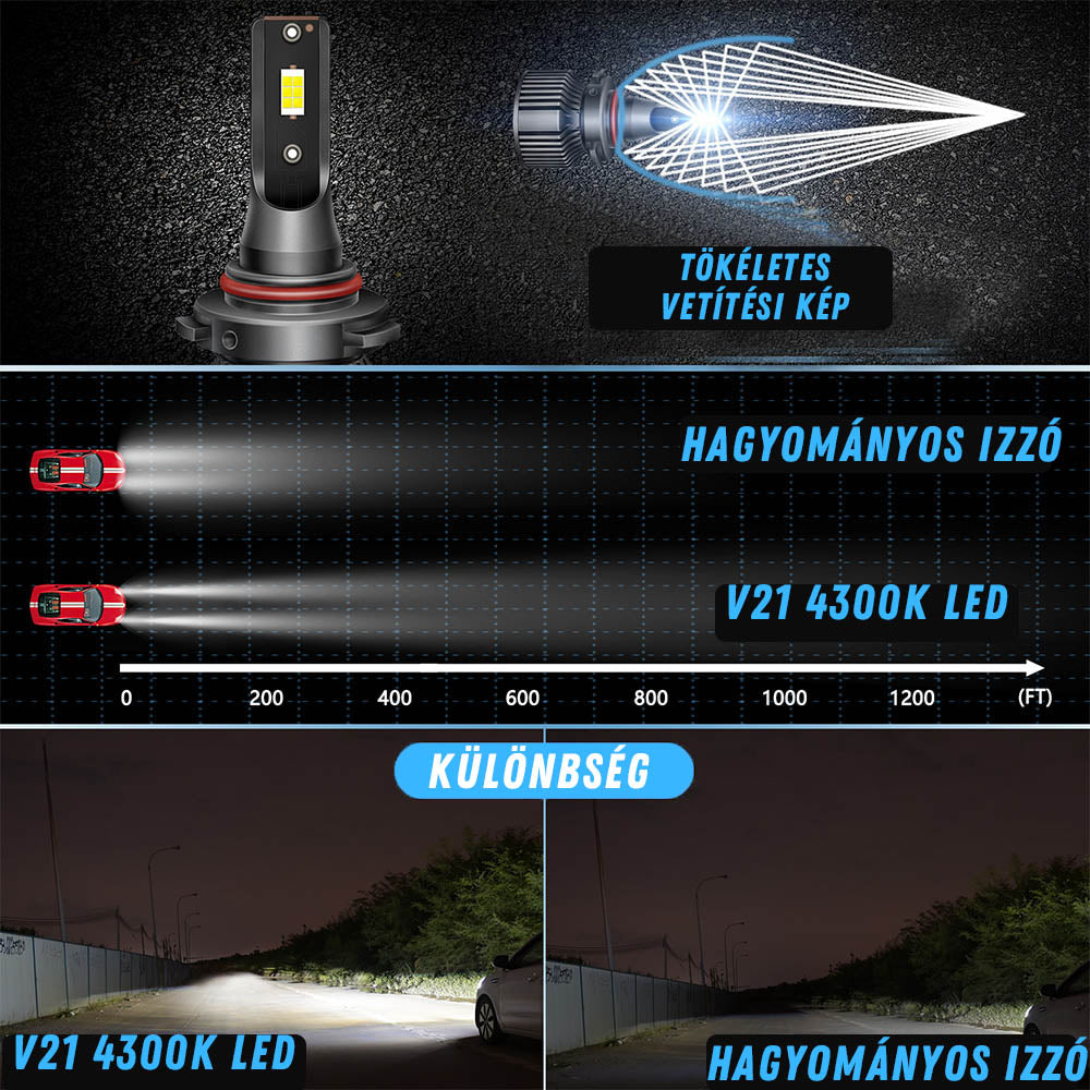Fényerő 8000 Lumen Fogyasztás 25 Watt Rendszer 12 Volt Színhőmérséklet 4300K sárgás fehér színhőmérséklet- 4300K sárgás fehér színhőmérséklet