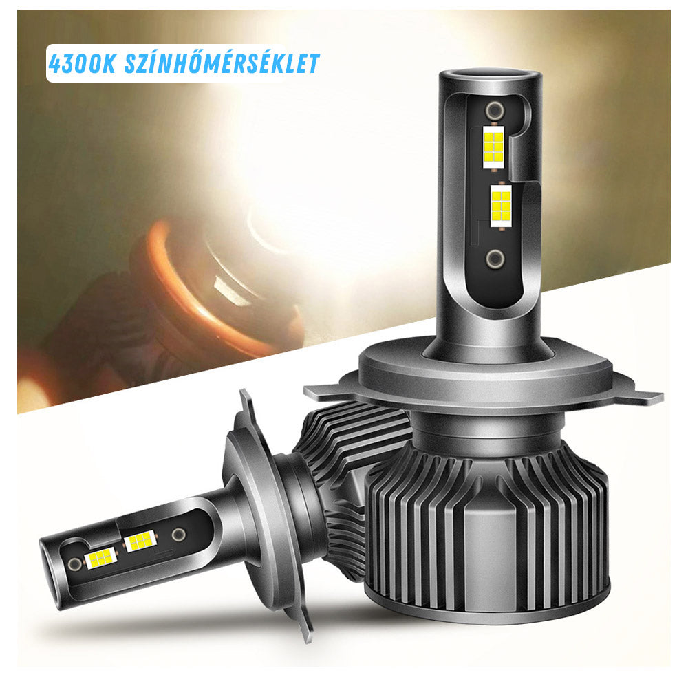 A legújabb szériás A8 márkájú ledek kialakítása és fényereje felül múlja az eddigi ledeket. A fényereje 8000 lumen, melyet a gyári izzóknak megfelelő 4300K színhőmérsékletű fény ként ad le, pontos vetítési képpel! Tökéletes vetítési képpel rendelkezik, projektoros és hagyományos lámpatestekkel is kiemelkedő teljesítményt nyújt. Tompított és távolsági fény kapcsolására is alkalmas, akár csak a gyári izzók. Políritásfüggetlen, így minden H4 foglalattal probléma mentesen működik. Hűtése ventillátoros, a megbízható nagy teljesítményű működéshez szükséges hűtőbordák mellett aktív, ventillátoros hűtés is kialakításra került a ledeknél. Fényereje 8000 lumen, melyet teljes egészében 4300K színhőmérsékletű fény ként ad le, pontos vetítési képpel! Canbus rendszerhez kiegészítő ellenállás vagy adapter szükséges, hogy ne jelezzen hibát. Sárgás-Fehér fényű 3570 típusú led chippekkel került kialakításra. A megfelelően beállított lámpák esetén nem zavarja a szembejövő forgalmat, mégis tökéletes látási viszonyt biztosít az autó vezetőjének. A mérete és a gyujtópont elhelyezkedése szinte miliméterre pontosan megegyezik a gyári H4 izzóéval. Ennek köszönhetően a legtöbb lámpatestbe berakható. Izzó adatai: Rendszer: 12V Fogyasztás: 25 Watt Fényerő: 8000 Lumen "A termék E jellel nem rendelkezik, közúton nem használható"H4 led adatai:
