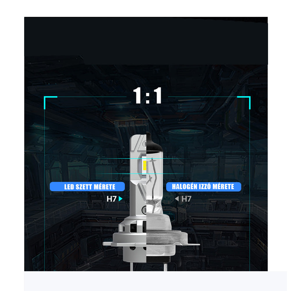 Az M11 széria legfontosabb tulajdonsága, hogy a gyári H7 izzókkal szinte miliméterre pontosan megegyezik. Így az adapteres és beforgatós lámpatestekbe is tökéletesen passzol.
