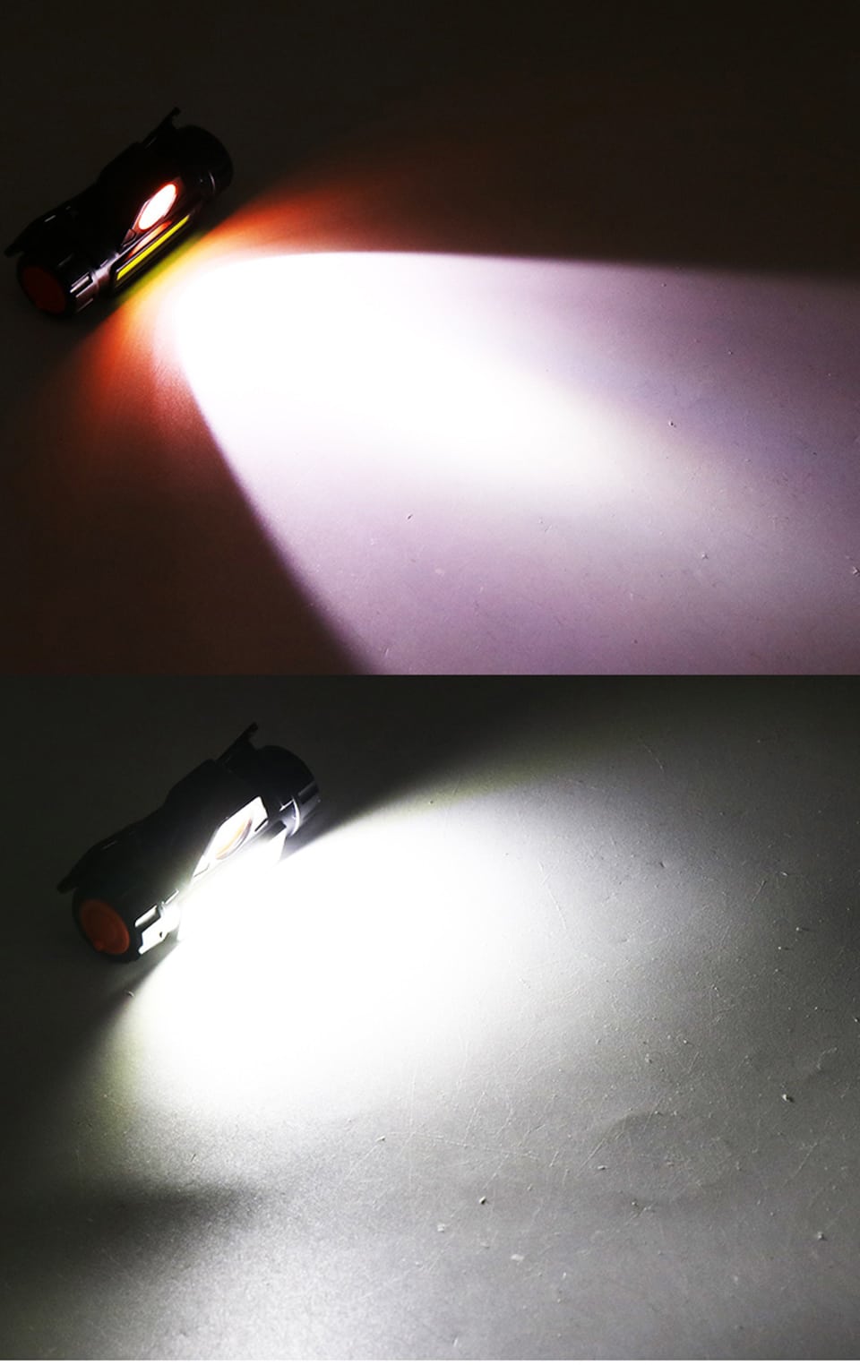 A fejlámpán két féle led van, egy fókuszált led ami pont szerűen világít és kimondottan a szereléshez van kialakítva, a másik pedig egy szélesebb teret bevilágító COB led ami egy általánosabb része.