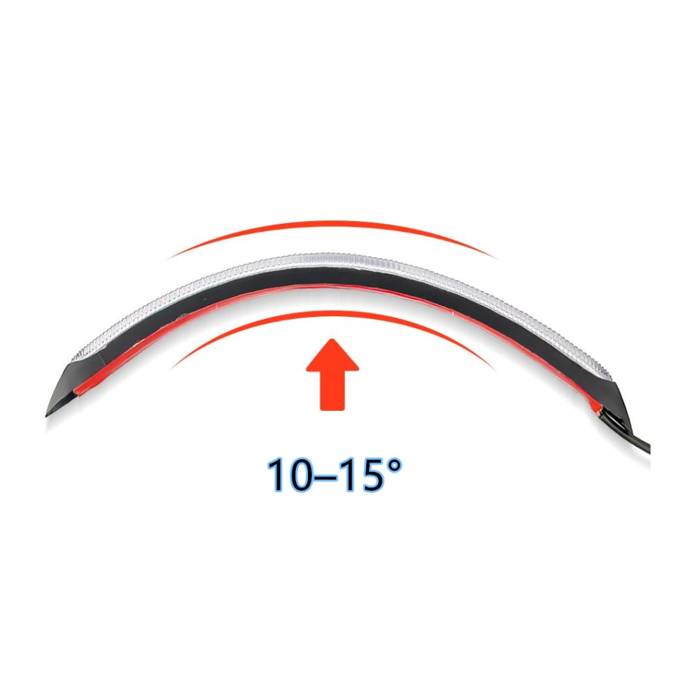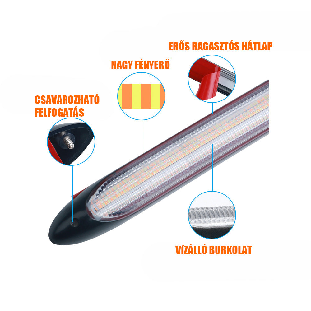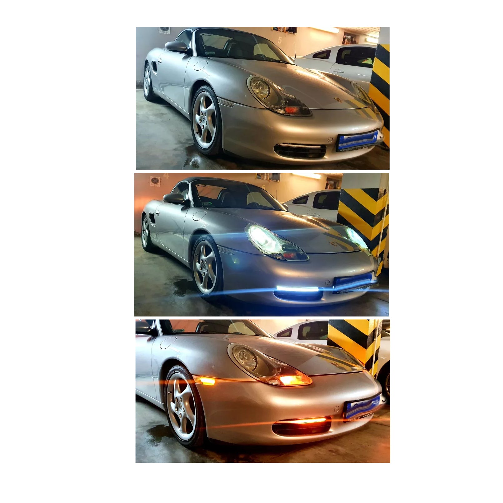 DRL ledes nappali menetfény szett, hideg fehér fénnyel és bekapcsoláskor üdvözlő fénnyel, illetve narancssárga index funkcióval rendelkezik. Az index funkció a mai autókhoz hasonlóan futófénnyel világit, ez a képek közt illusztrálva van. Az üdvözlőfény bekapcsoláskor végig fut a led teljes hosszán majd szakaszokban világítva áll be a menetfény. A ledcsík könnyen felszerelhető, alakítható öntapadós hátlappal van ellátva és teljesen vízálló szilikonbukolatba van építve Az index funkció müködéséért felelős vezérlő egység már bele van építve Amikor indexel, akkor nem világít fehéren, ezt automatikusan váltja Mérete: 23cm hosszú, és 2cm széles.. Amennyiben automatikus ki/be kapcsolással szeretné használni, akkor érdemes menetfény vezérlő elektronikával bekötni. Menetfény adatai: Rendszer: 12V Fogyasztás: 20 Watt Fényerő: 1300 Lumen E jellel nem rendelkezik A termékről bemutató videó is megtekinthető Youtube csatornánkon! https://youtu.be/ei1EOmQQGDc Üdvözlőfény és futófényes irányjelző Az üdvözlőfény bekapcsoláskor végig fut a led teljes hosszán majd szakaszokban világítva áll be a menetfény. Az irányjelző futófénnyel világít.