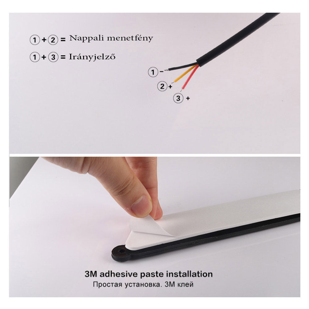 A menetfény hajlékony kialakítása miatt könnyen felrakható bármilyen autóra