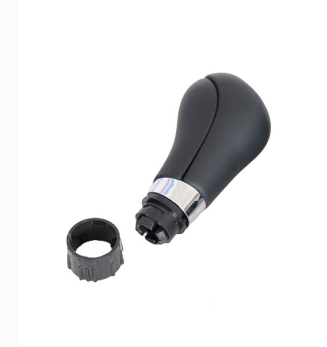 A váltógomb számlapja emblémás, a váltógomb teste pedig bőrözött, fekete színben.