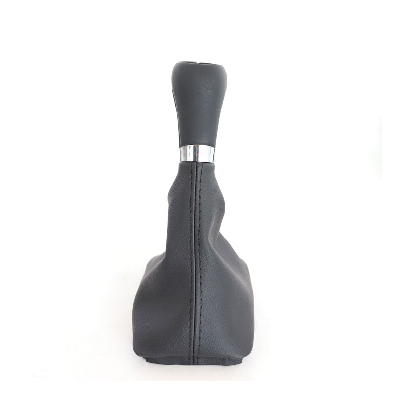 A váltógomb számlapja fényes felületű, fekete emblémával ellátva. A váltógomb és a szoknya egybe van bőrözve mint a gyári típusnál
