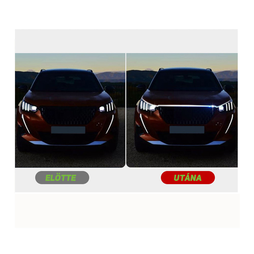 Erőteljes ledekkel hideg fehér fénnyel rendelkező ledszalag, amely autó dekoráció ként használható. A legújabb trend a prémium márkáknál az első illetve hátsó lámpákat összekötő led csík. Ezzel a termékkel ez bármelyik autón kialakítható. A ledszalag puha szilikonos burkolatban van, így könnyedén alakítható a motorháztető formájára. A felrakása nagyon egyszerű, kétoldalú ragasztóval van ellátva, így felkell csak ragasztani a motorháztetőra. A bekötése történhet külön kapcsolóval, vagy a meglévő fényszóró vezetékére, így a lámpákkal együtt fog felkapcsolni. Bekapcsoláskor fényjátékkal indít a ledszalag. Végig fut a fény a csík teljes felületén, majd pulzál és ezt követően áll be a folyamatos világtásra. Mérete: 180cm hosszú 11mm széles 6mm vastag     Erőteljes hideg fehér fénnyel világít. Modern megjelenést biztosít az autónak. https://youtu.be/Ipog1UM06UU
