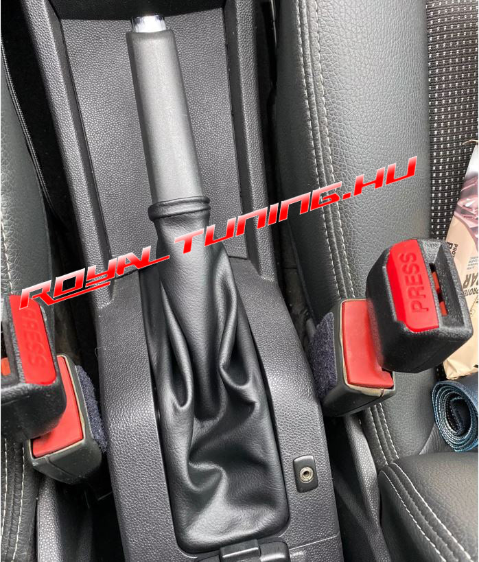 A kézifékszoknya fekete színű fekete varrással. Kompletten a beépítőkerettel össze van szerelve, így nagyon egyszerű a cseréje. A szoknya anyaga műbőr, mint a gyári.