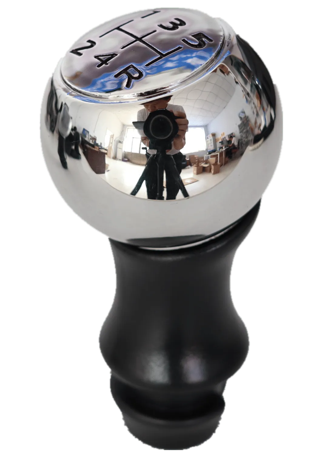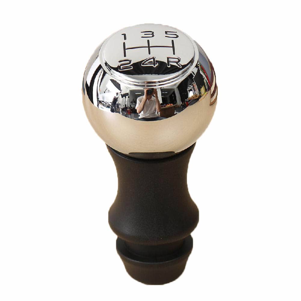 A Peugeot váltógomb a gyárival megegyező kialakítású. Öt sebességes, a számlap kiosztása 12345R. A számlapja fényes krómozott felületű, a váltógomb alsó része pedig fekete.