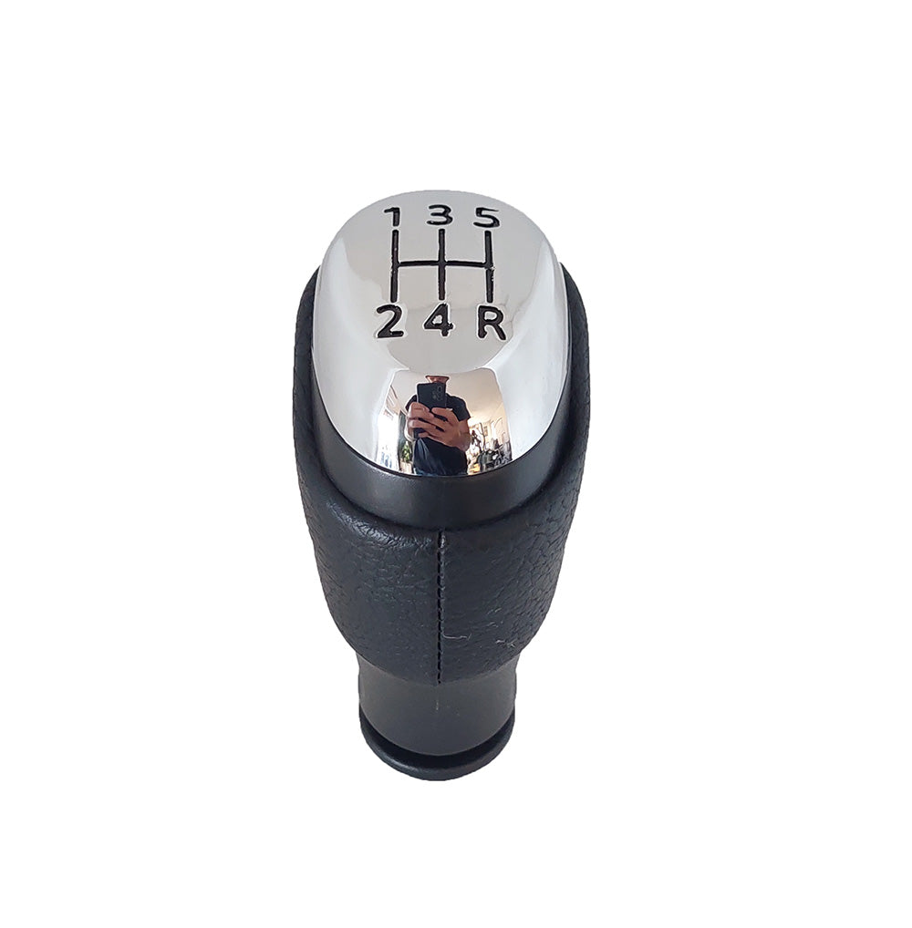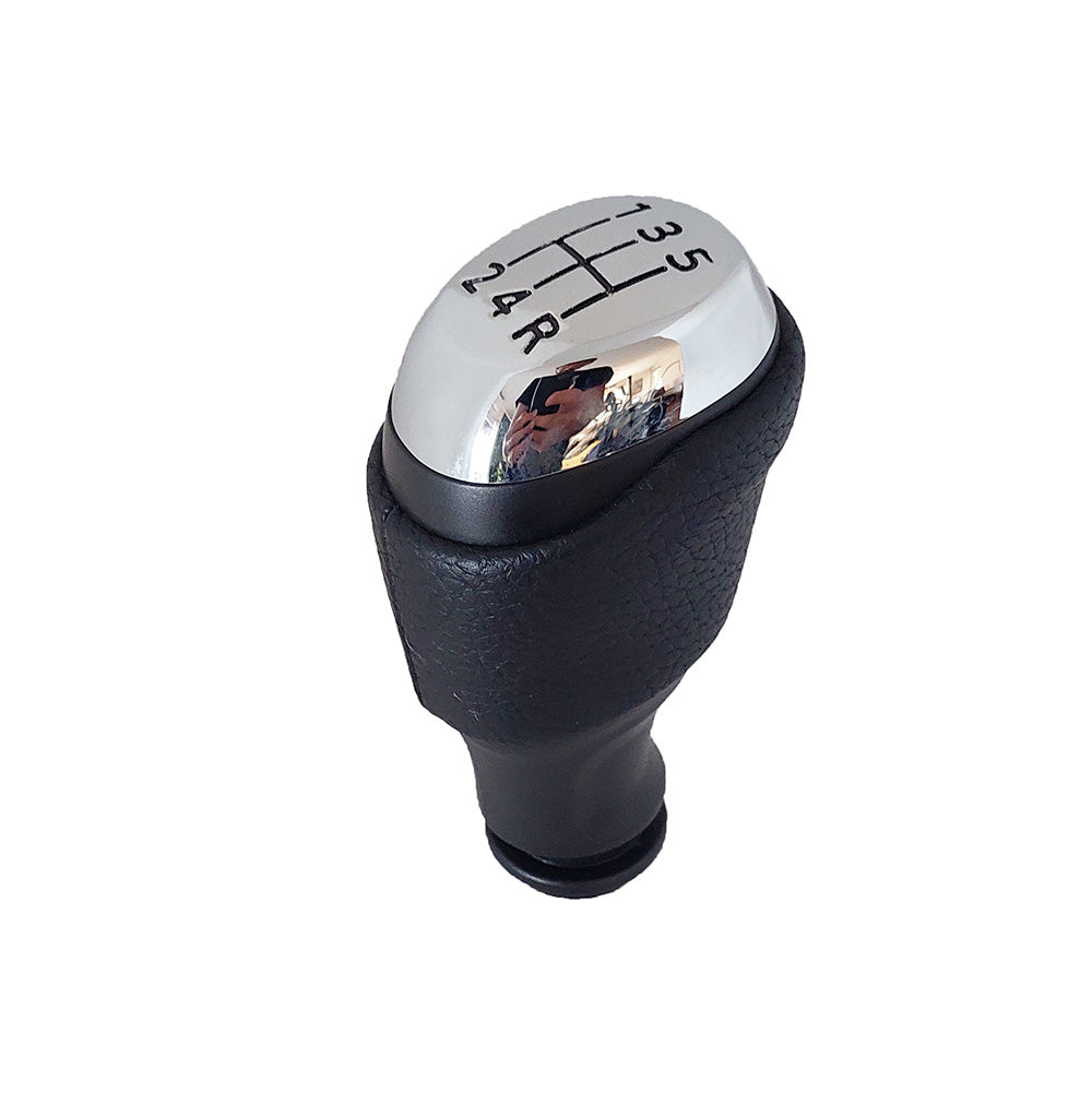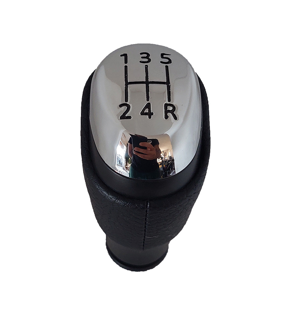 A váltógomb számlapja króm színű az oldala a gyári váltógombhoz hasonlóan bőrözött.