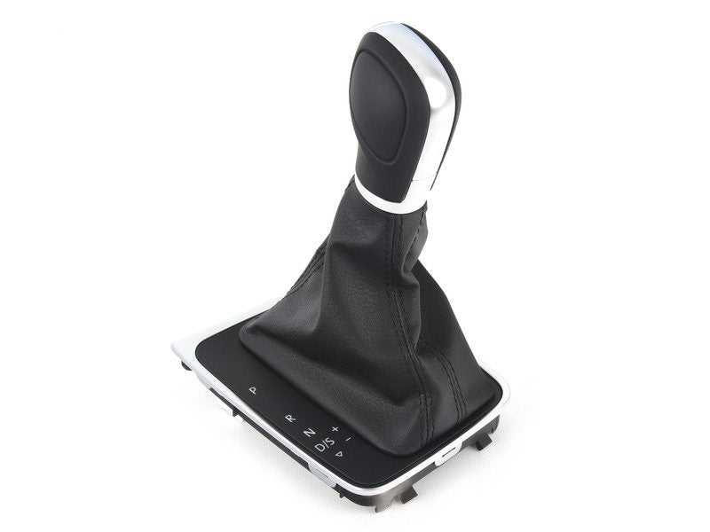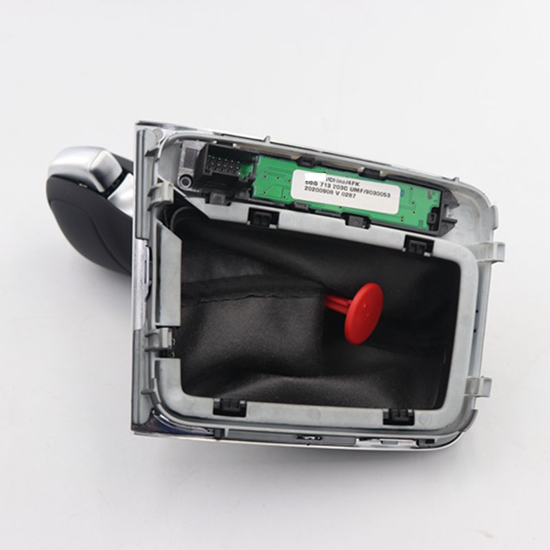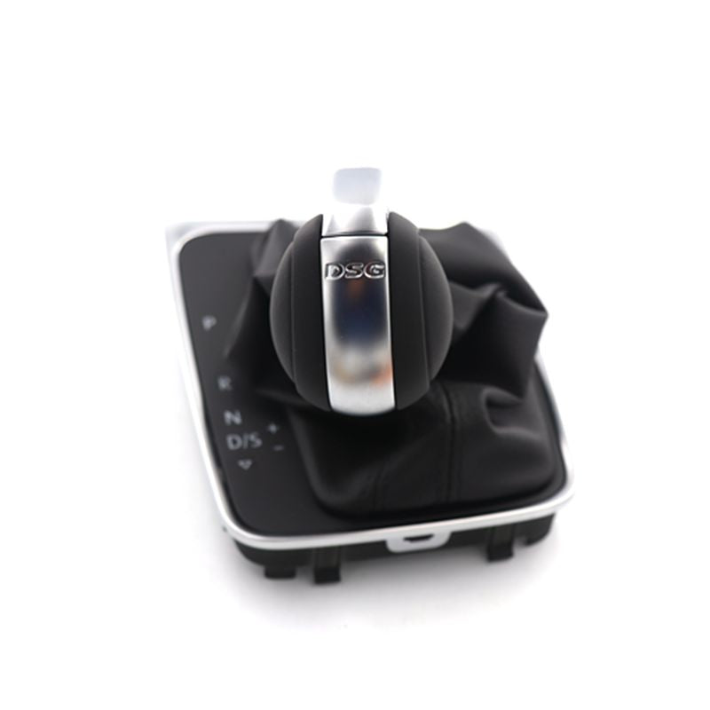 A váltószoknya fekete színű fekete varrással. Kompletten a beépítőkerettel össze van szerelve, így nagyon egyszerű a cseréje. A szoknya és a váltógomb anyaga bőr. A váltógomb automata, kompletten a kapcsológombbal együtt. A betétek matt ezüst színűek, a váltógomb tetején DSG felirattal.A képeken látható piros fül csak a beszerelésig szükséges rá, ez rögzíti a kapcsológombot. Ezután le kell pattintani.