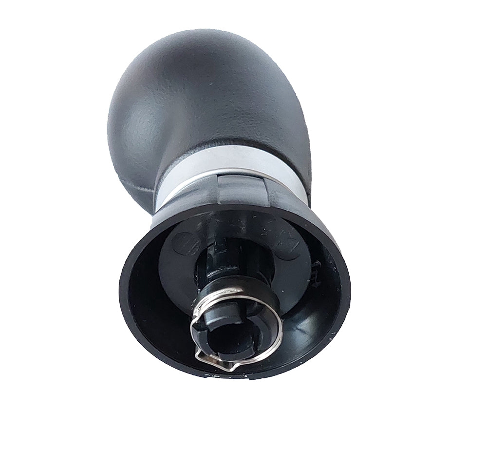 A váltógomb számlapja fényes fekete színű. A szoknya rögzítő műanyagot és a váltórúdhoz rögzítőbilincset is tartalmazza.
